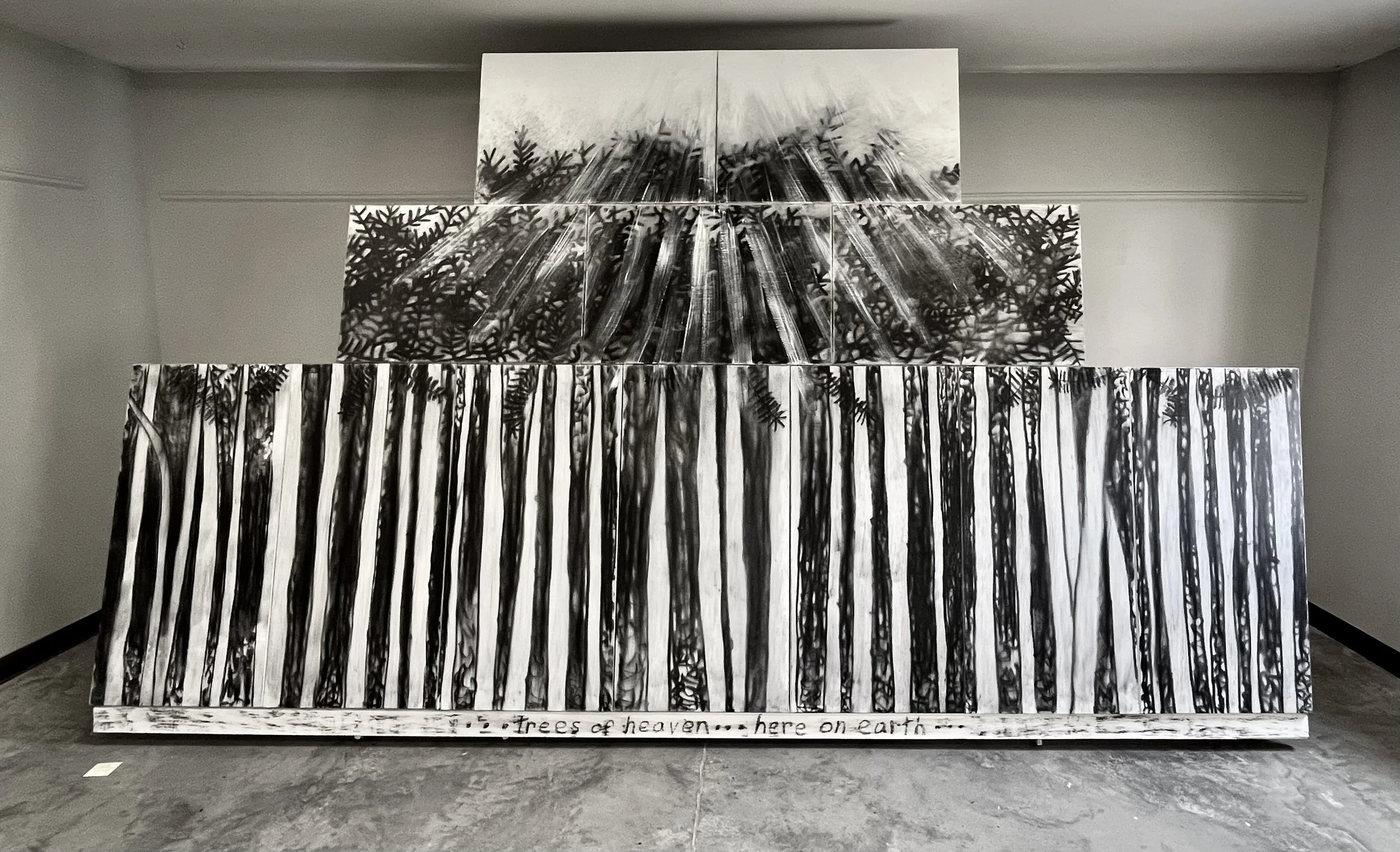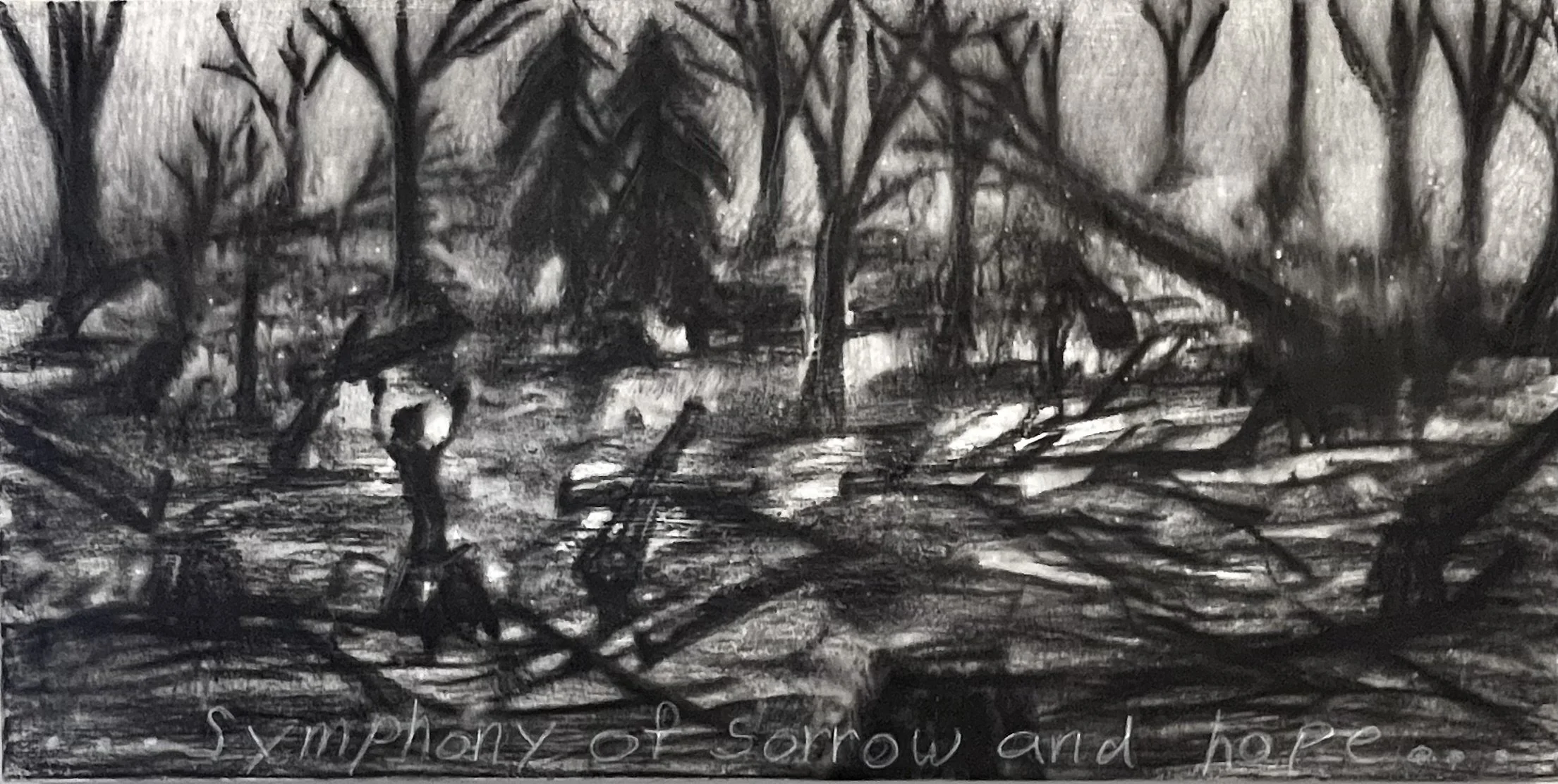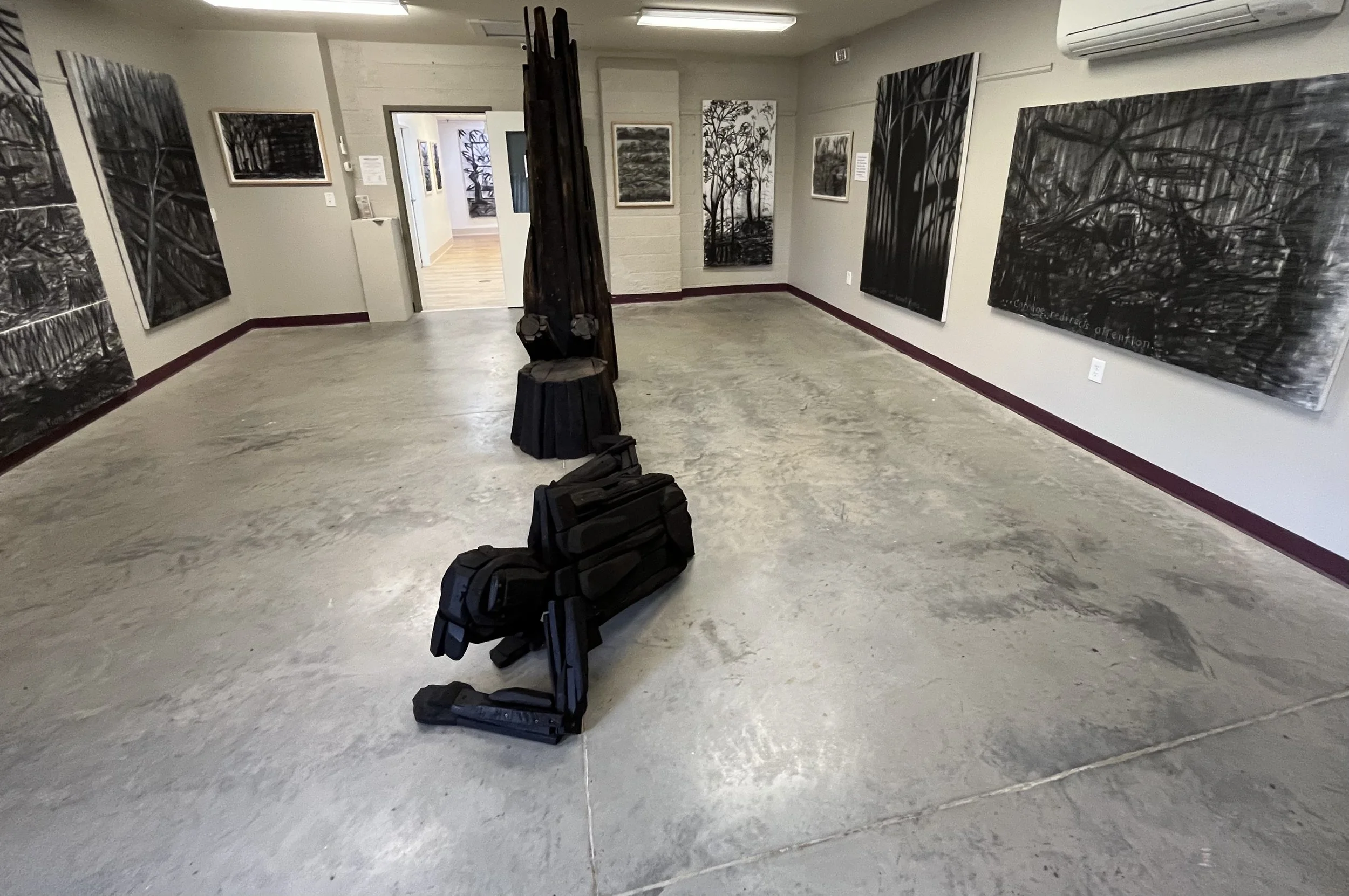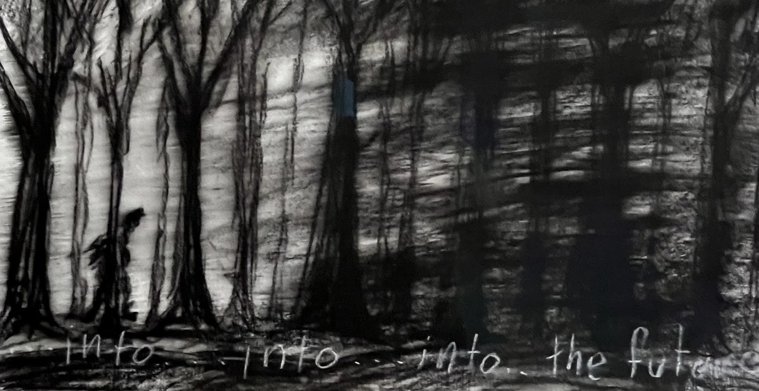 With my first charcoal drawings, I was interested in the beauty of trees and forests. An exhibit of these drawings, “Into the Trees”, can be seen at the Alexander Black House in Blacksburg, VA thru 11/29/25. “Lamentations and Exaltations” runs thru 10/4/25 at Floyd  Center for the Arts in Floyd, VA. These drawings were all done after I encountered a logged forest. As I walked in the remains, I felt that suffering and loss are part of life for trees too, and we share with them a persistent long–suffering resilience, and always the potential of rebirth.